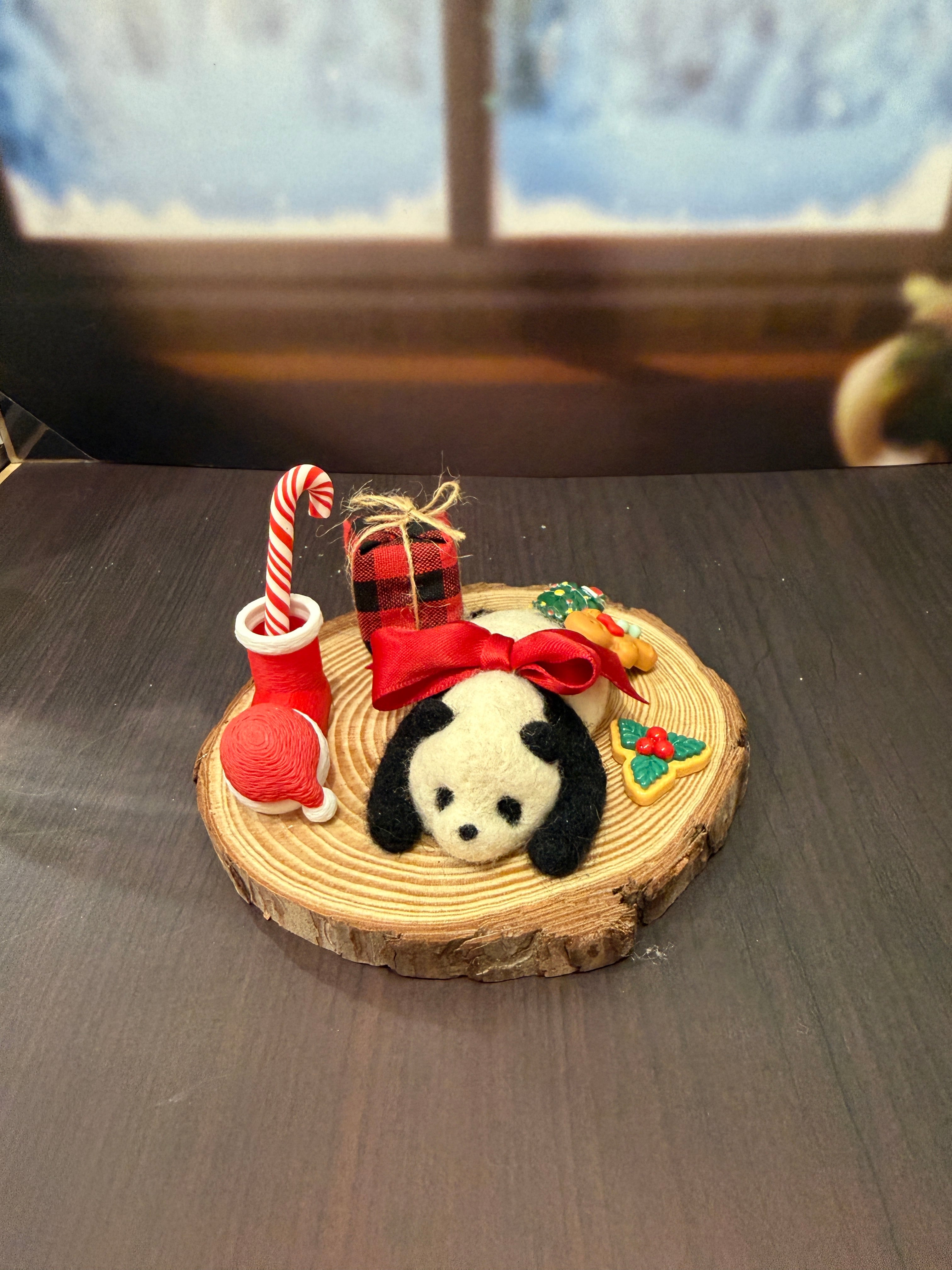 クリスマスの夜、届いたのはすやすやと眠っている赤いリボンをかけられてプレゼントのようになっているパンダ。