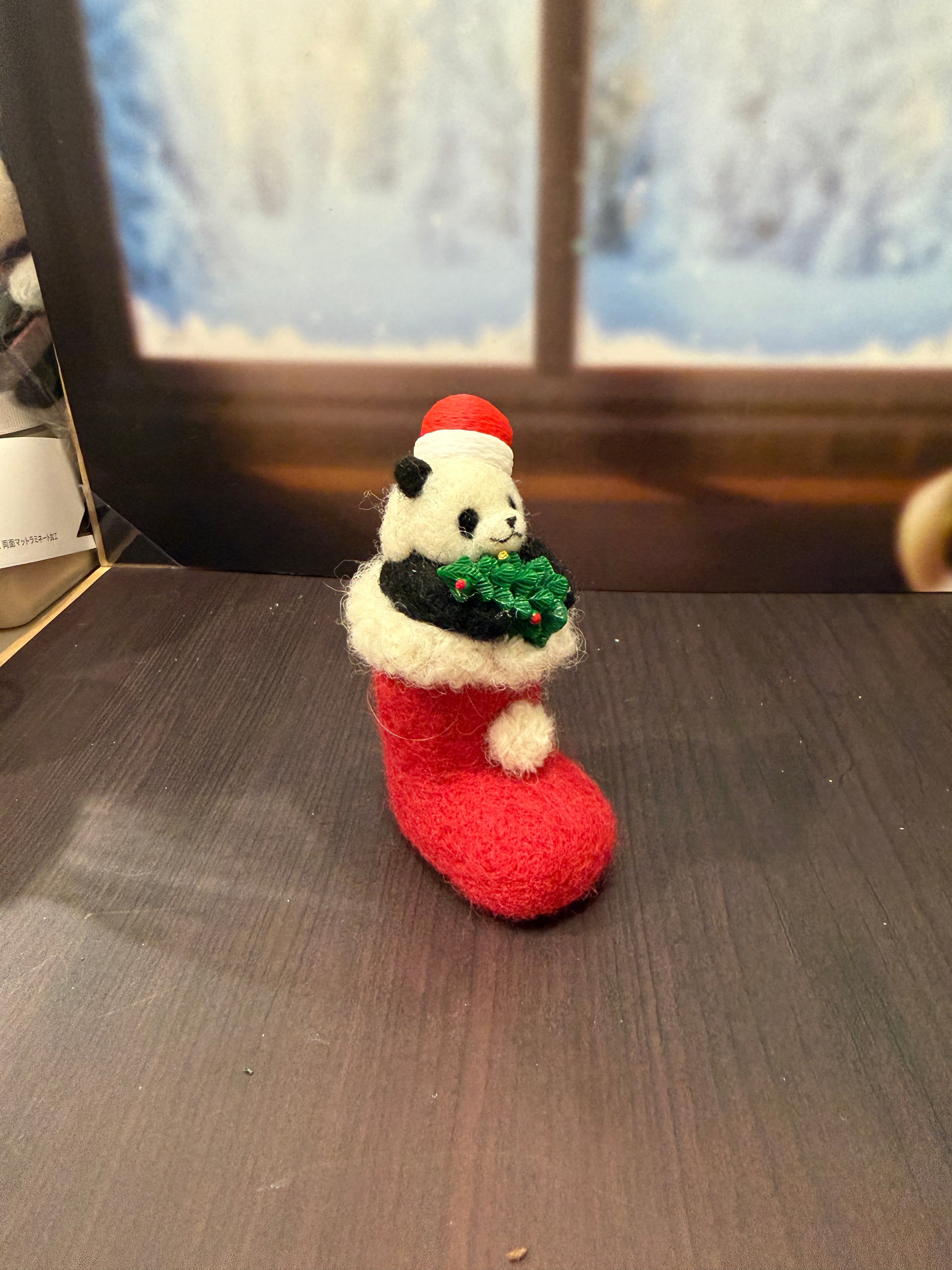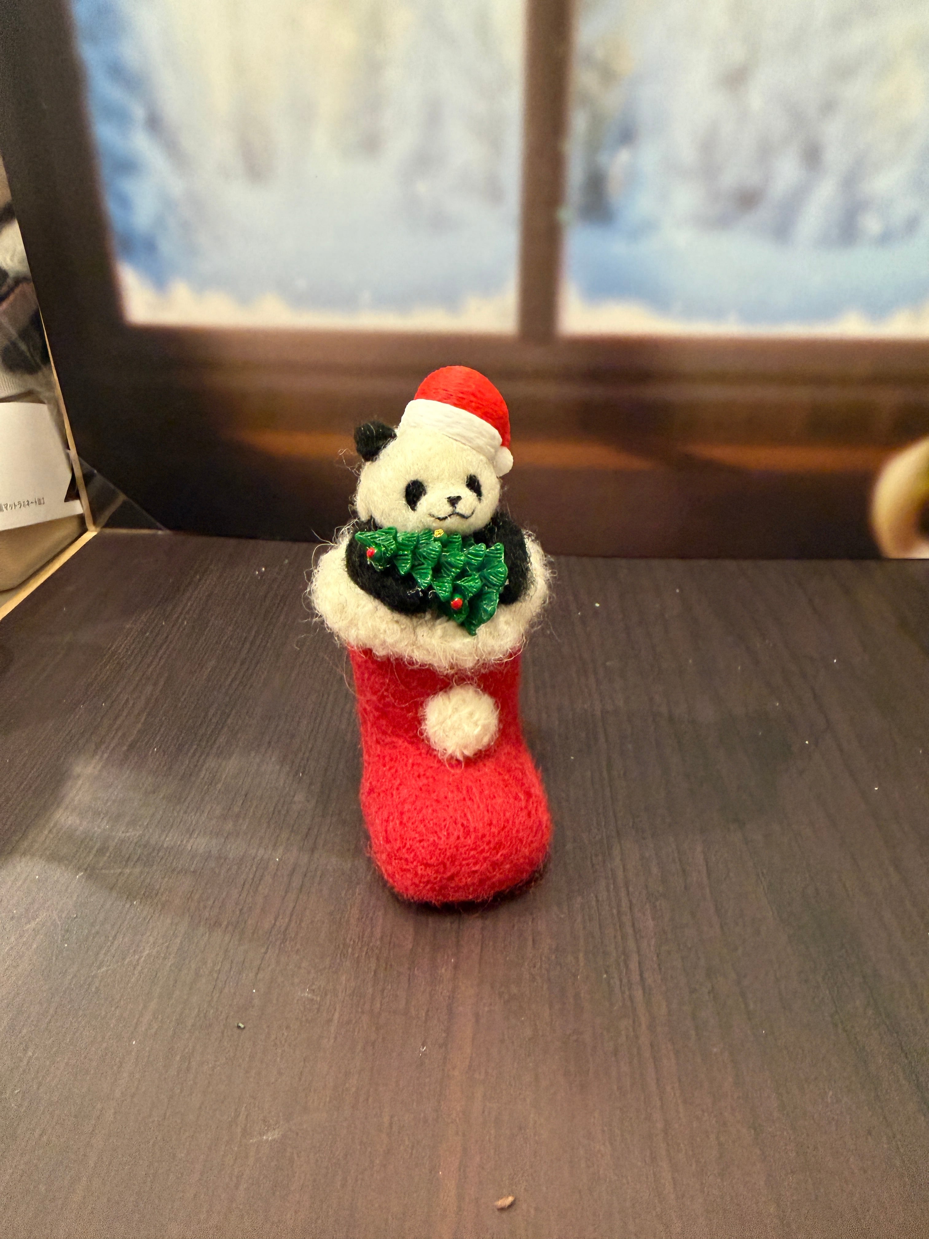 サンタ帽をかぶった、ちいさなパンダ。