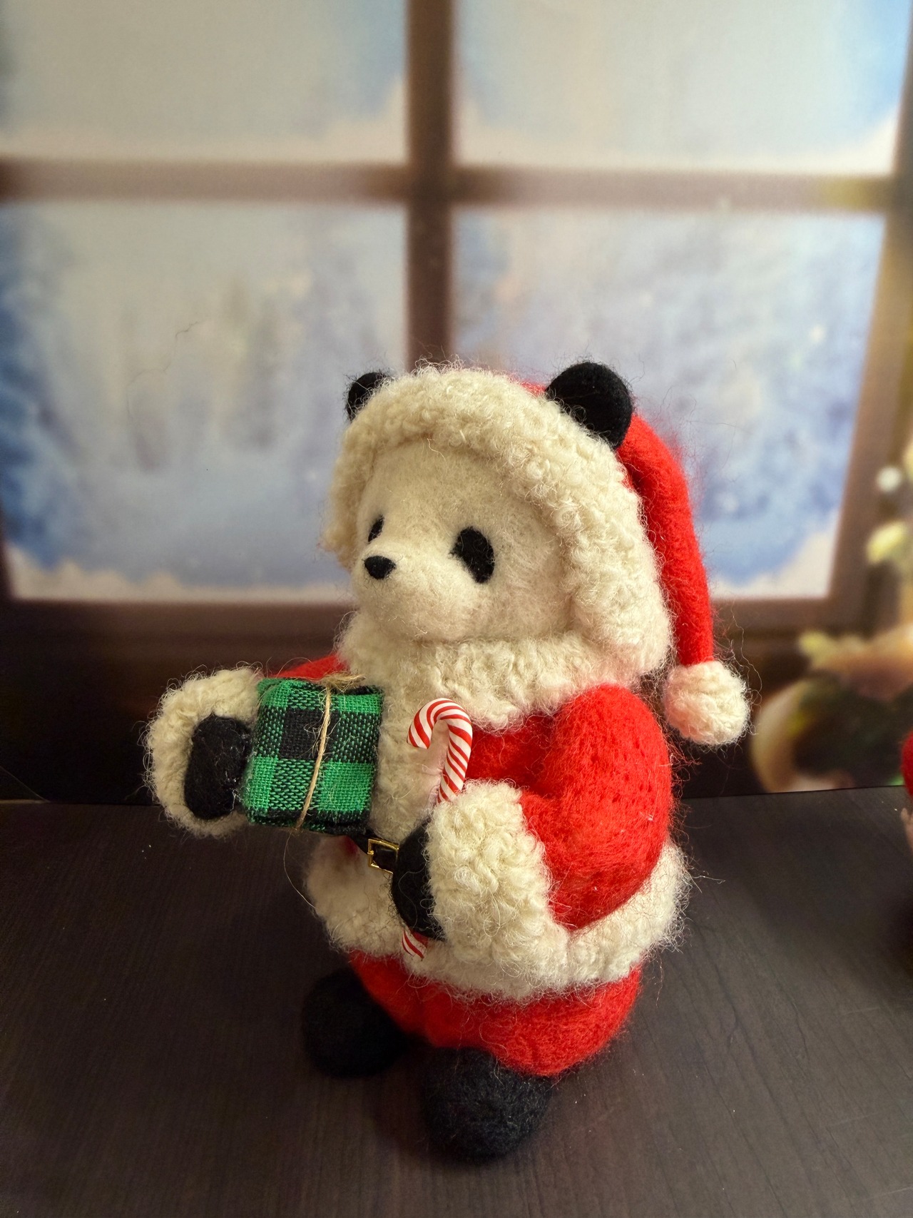 眺めていると語りかけたくなるような可愛らしさにこだわったサンタクロースパンダです。